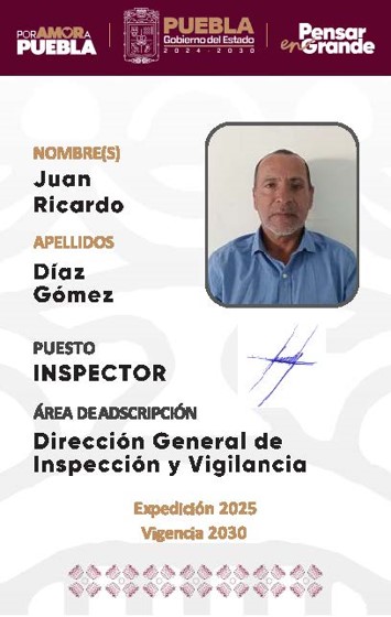• Nombre completo de la Persona Servidora pública autorizada para realizar inspecciones, verificaciones o visitas domiciliarias: Juan Ricardo Díaz Gómez