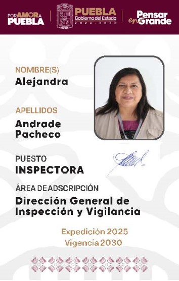 • Fundamento Jurídico de la inspección: Artículos 53 de la Ley de obras públicas y servicios relacionados con las mismas; 112 Y 113 Fracción I del Reglamento de la Ley de Obras Públicas y Servicios relacionados con las mismas; 76 Y 77 Fracción I del reglamento de la Ley de Obra Pública y Servicios Relacionados con la misma para el estado de Puebla; 31 Fracción X Y 41 de la Ley Orgánica de La Administración Pública del Estado de Puebla; 11 Fracción XXXIV y 21 Fracción XXXV del Reglamento Interior de la Secretaría de Infraestructura.