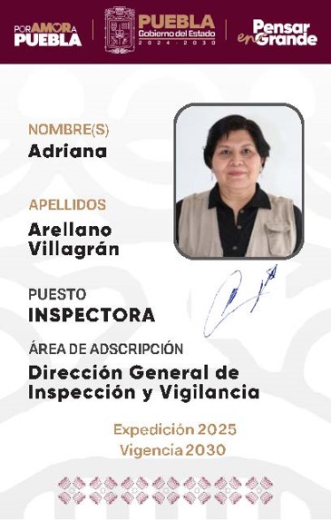 • Nombre completo de la Persona Servidora pública autorizada para realizar inspecciones, verificaciones o visitas domiciliarias: Adriana Arellano Villagrán