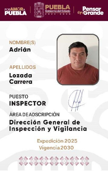 • Nombre completo de la Persona Servidora pública autorizada para realizar inspecciones, verificaciones o visitas domiciliarias: Adrián Lozada Carrera