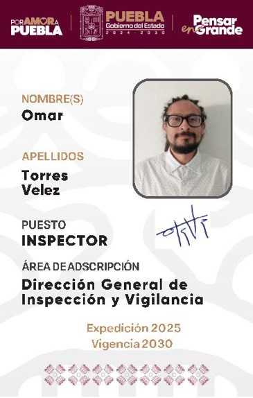 • Nombre completo de la Persona Servidora pública autorizada para realizar inspecciones, verificaciones o visitas domiciliarias: Omar Torres Velez