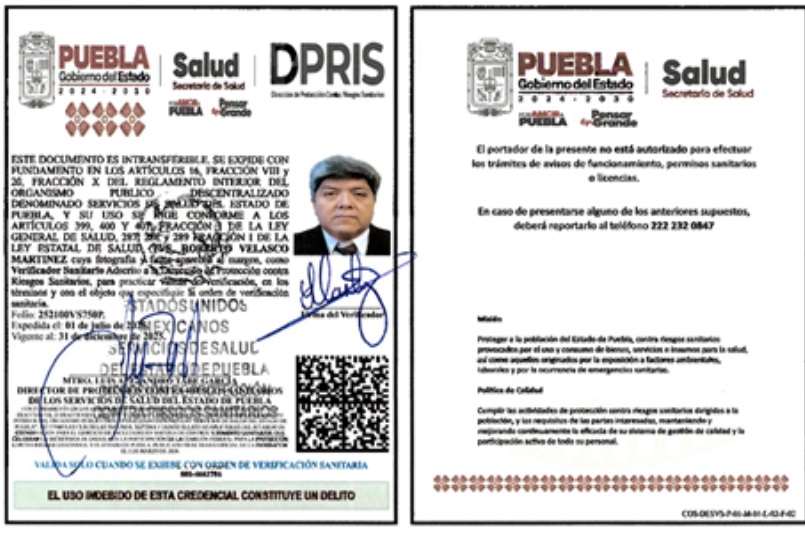 • Fundamento Jurídico de la inspección: Con fundamento en lo dispuesto en los artículos 4°, párrafo cuarto, 14 y 16 de la Constitución Política de los Estados Unidos Mexicanos; 3° fracciones XXII y XXIV, 4°, fracciones IlI y IV, 13, apartado A, fracción II, y B, fracciones VI Y VII, 194, fracción I, 197, 199, 393, 396, fracción I, 397, 398, 399, 400, 401, 401 Bis, 401 Bis-1, 401 Bis-2, 402, 403, 404, fracción VIl y X 425, 431 y 436 de la Ley General de Salud; cláusulas Segunda, primero, segundo y último párrafo, Séptima, primero y segundo párrafos, y el Anexo 1, criterio 3, del Acuerdo de Coordinación para el ejercicio de facultades en materia de control y fomento sanitarios, que celebran la Secretaría de Salud, con la participación de la Comisión Federal para la Protección contra Riesgos Sanitarios, y el Estado de Puebla, publicado en el Diario Oficial de la Federación el 1 de marzo de 2024;y los artículos 3, Fracción II, de la Ley Estatal de Salud, artículos 1, 2, 5 último párrafo inciso e), 6 fracciones I, II, III, IV, VI 13 fracción VII, 23 fracciones I, II, III, IV V. VI. XIII, XIV y demás relativos aplicables del Reglamento Interior del Organismo Público Descentralizado denominado Servicios de Salud del Estado de Puebla, y cuarto transitorio del Decreto del Ejecutivo del Estado por el que se expidió éste, publicado en el Periódico Oficial del Estado el 8 de febrero de 2013.