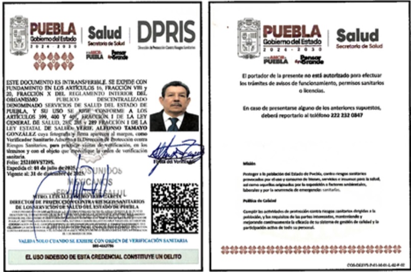 • Fundamento Jurídico de la inspección: Con fundamento en lo dispuesto en los artículos 4°, párrafo cuarto, 14 y 16 de la Constitución Política de los Estados Unidos Mexicanos; 3° fracciones XXII y XXIV, 4°, fracciones IlI y IV, 13, apartado A, fracción II, y B, fracciones VI Y VII, 194, fracción I, 197, 199, 393, 396, fracción I, 397, 398, 399, 400, 401, 401 Bis, 401 Bis-1, 401 Bis-2, 402, 403, 404, fracción VIl y X 425, 431 y 436 de la Ley General de Salud; cláusulas Segunda, primero, segundo y último párrafo, Séptima, primero y segundo párrafos, y el Anexo 1, criterio 3, del Acuerdo de Coordinación para el ejercicio de facultades en materia de control y fomento sanitarios, que celebran la Secretaría de Salud, con la participación de la Comisión Federal para la Protección contra Riesgos Sanitarios, y el Estado de Puebla, publicado en el Diario Oficial de la Federación el 1 de marzo de 2024;y los artículos 3, Fracción II, de la Ley Estatal de Salud, artículos 1, 2, 5 último párrafo inciso e), 6 fracciones I, II, III, IV, VI 13 fracción VII, 23 fracciones I, II, III, IV V. VI. XIII, XIV y demás relativos aplicables del Reglamento Interior del Organismo Público Descentralizado denominado Servicios de Salud del Estado de Puebla, y cuarto transitorio del Decreto del Ejecutivo del Estado por el que se expidió éste, publicado en el Periódico Oficial del Estado el 8 de febrero de 2013.