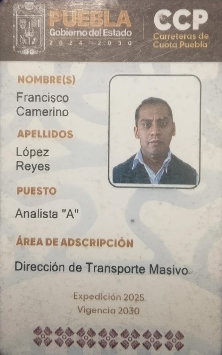 • Fundamento Jurídico de la inspección: - Ley de Movilidad y Transporte del Estado de Puebla: Art. 6 Fracc. VI, 12 Fracc. I Apartado A, Art. 87 - Reglamento de la Ley de Transportes para el Estado de Puebla: Art. 145 - Reglamento Interior del Organismo Público Descentralizado denominado Carreteras De Cuota-Puebla: Art. 22 Fracc. XXXI, Art. 25 Fracc. VI y XIV
