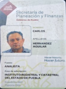 • Nombre completo de la Persona Servidora pública autorizada para realizar inspecciones, verificaciones o visitas domiciliarias: Carlos Hernández Aguilar
