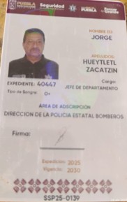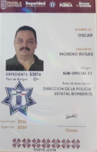 • Nombre y cargo del superior jerarquico: Oscar Zapotecatl Cacalo. Encargado de Despacho de la Dirección de la Policía Estatal de Bomberos.