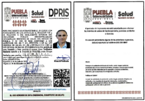 • Fundamento Jurídico de la inspección: Artículos: 4° párrafo cuarto, 14 y 16 de la Constitución de los Estados Unidos Mexicanos; 3° fracción I, 4° fracciones III y IV, 13 apartados A, fracción II, y B fracciones VI y VII; 393, 396, fracción I, 397, 398, 399, 400, 401, 402, 403, 404, 425, 431 y 436 de la Ley General de Salud; cláusulas Segunda, primero y segundo párrafos, y el Anexo 1, criterio 3, del Acuerdo Específico de Coordinación para el ejercicio de facultades en materia de control y fomento sanitario, que celebran la Secretaría de Salud, con la participación de la Comisión Federal para la Protección contra Riesgos Sanitarios, y el Estado de Puebla, Publicado en el Diario Oficial de la Federación el 2 de enero de 2007; y los artículos 3 fracción II, de la Ley Estatal de Salud, artículos 4 fracción III, inciso B), subinciso B.3, 16 fracción VIII y 20 fracciones II, IV y XV del Reglamento Interior del Organismo Público Descentralizado denominado Servicios de Salud del Estado de Puebla.